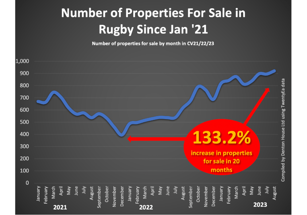 It has continued to rise and today stands at 921 properties for sale, a rise of 133.2% in 20 months.