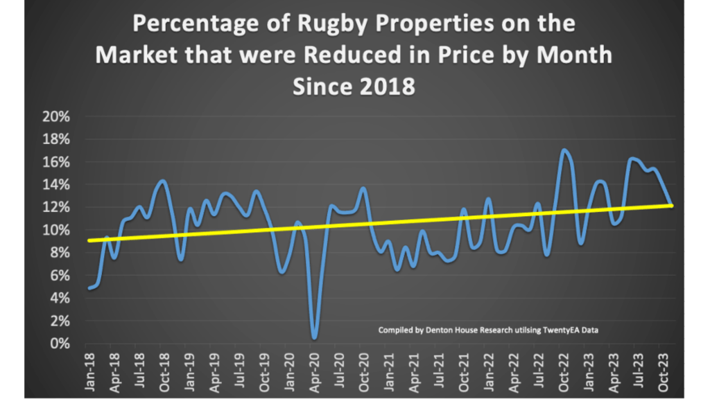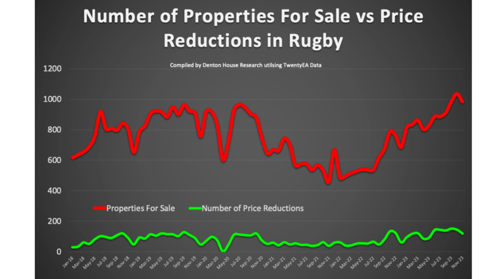 As you can see, there has been a substantial increase in properties on the market and thus price reductions in the Rugby area the last year.